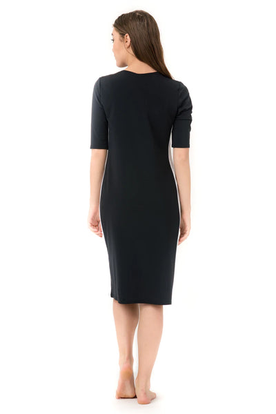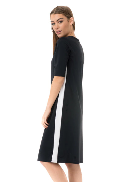 Our swim dresses have a casual elegance that makes you look fashionable wherever you are. Our unique Racer Swim Dress features slimming racer stripes down the side of the dress, and sporty armbands on the sleeves.